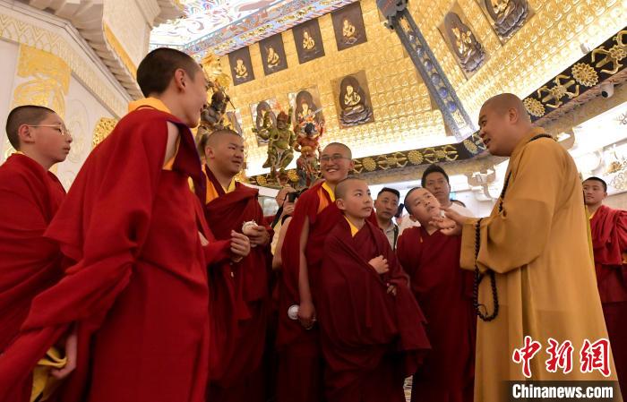 寬嚴(yan) 法師鼓勵少年活佛,通過不斷學習(xi) 開闊眼界,用中華文化沁潤藏傳(chuan) 佛教,講出符合時代和社會(hui) 的經典教義(yi) 。