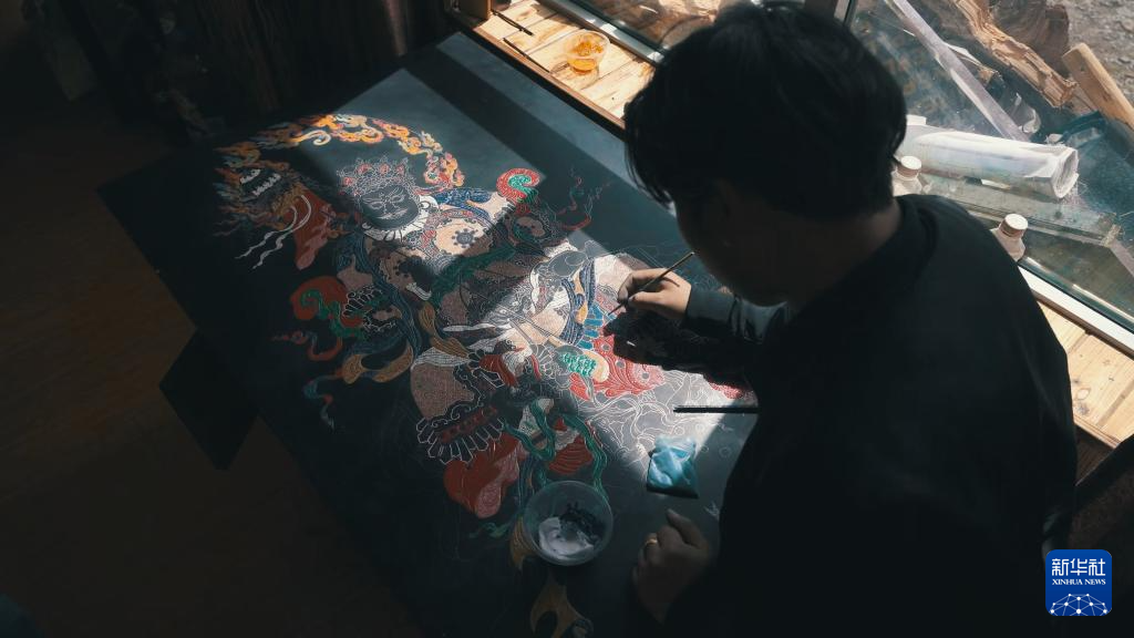 “漆畫的表現是自由的、包容的,可以實現唐卡想要的多種效果!”隨著學習(xi) 深入,仁青郎加對唐卡漆畫的理解更深了一分。
