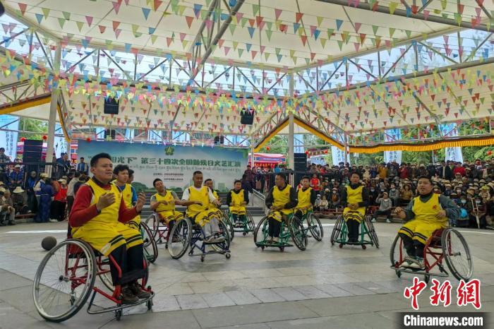 圖為(wei) 助殘日當天,西藏輪椅籃球隊成員表演節目《健康西藏動起來》。西藏自治區殘聯供圖