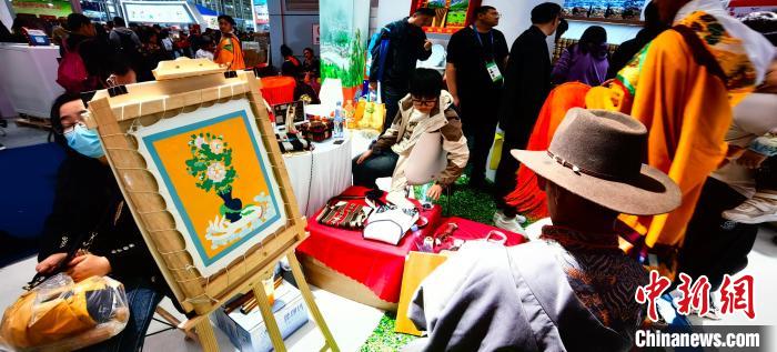 具有濃鬱西藏文化特色的唐卡、皮具、服飾和文創產(chan) 品吸引了眾(zhong) 多觀眾(zhong) 。劉錫菊 攝