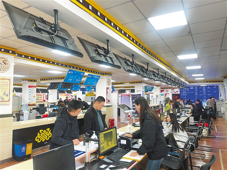 窗口是服務群眾(zhong) 的第一線。走進山南市政務服務中心,隻見在各服務窗口前辦理業(ye) 務的群眾(zhong) 依次排隊、秩序井然,工作人員有條不紊地為(wei) 群眾(zhong) 提供貼心服務,耐心細致地為(wei) 群眾(zhong) 答疑解惑。