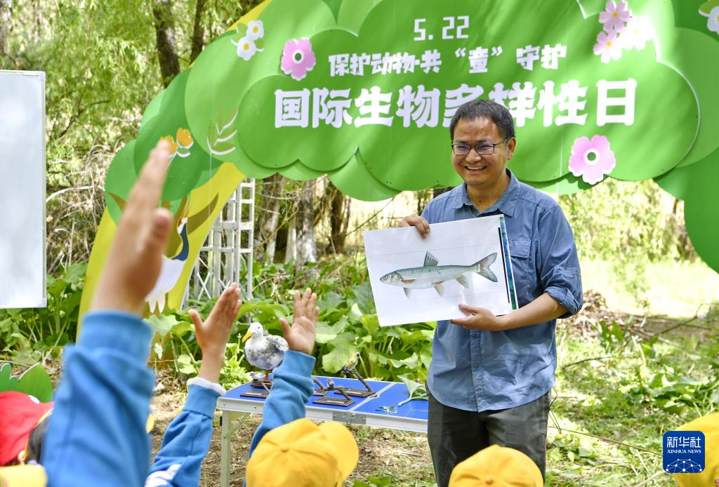 5月22日,西藏大學生態環境學院教授張繼峰向小學生普及有關(guan) 西藏魚類的知識。新華社記者 張汝鋒 攝