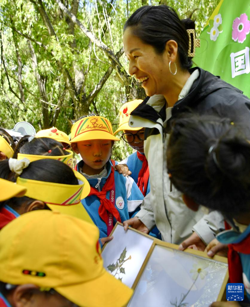 5月22日,西藏大學生態環境學院副教授索南措向小學生普及植物多樣性知識。新華社記者 張汝鋒 攝