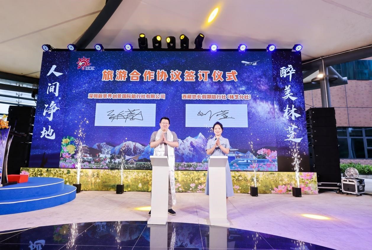 推介會(hui) 上,來自深圳、林芝兩(liang) 地的旅遊企業(ye) 就兩(liang) 地旅遊宣傳(chuan) 合作事宜簽訂戰略合作協議,推動粵林兩(liang) 地經濟社會(hui) 高質量發展。