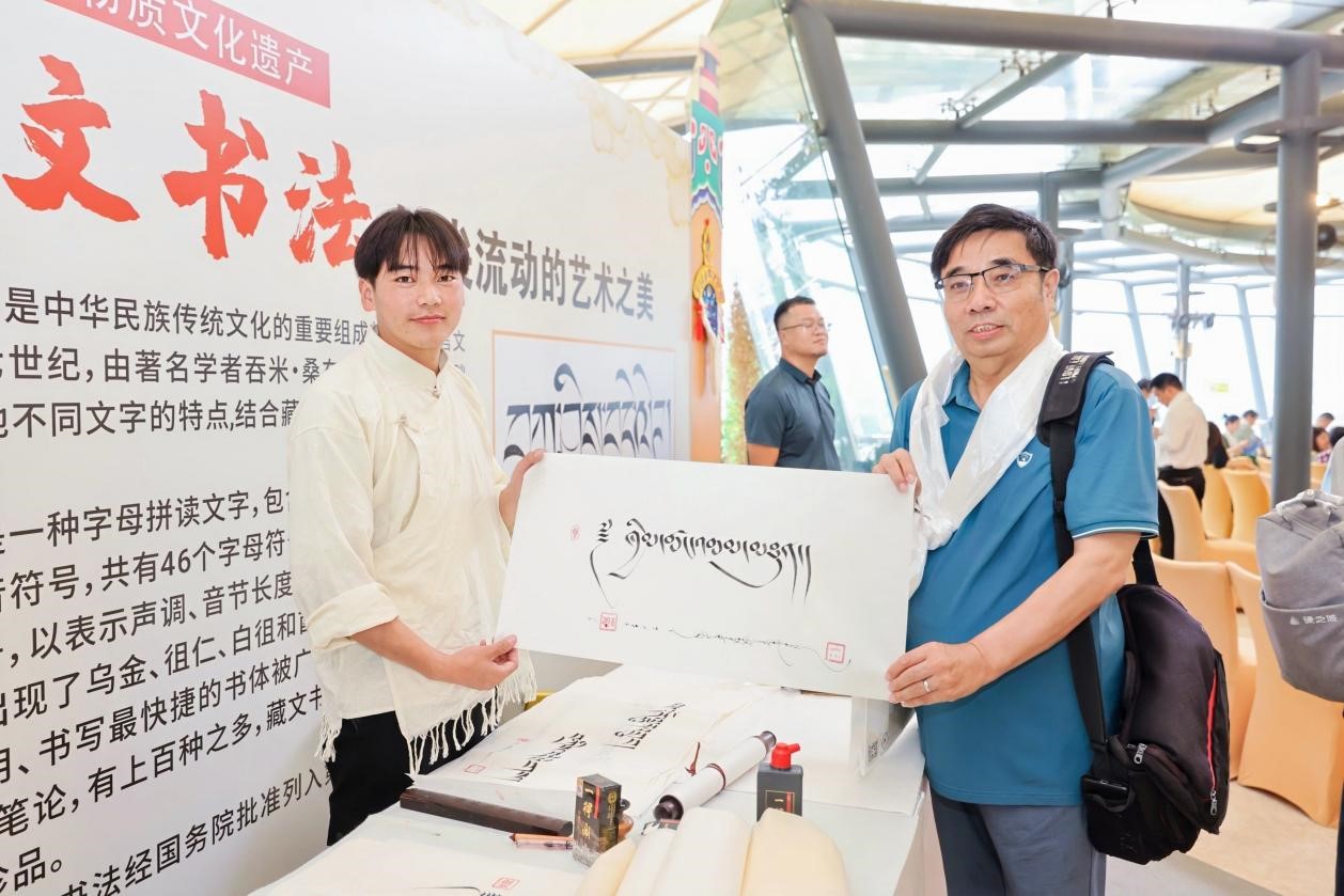 本次旅遊推介會(hui) 采用沉浸式體(ti) 驗的方式,以嘉賓分享、特色民俗歌舞表演和推介人娓娓道來的形式展開,輔以“林芝味道”的加持,將現場嘉賓沉浸式帶入濃厚的藏式風情中,充分感受“人間淨地·醉美林芝”的獨特魅力。同時,“人間淨地 醉美林芝”風景圖片展、“翰墨飄香”藏文書(shu) 法展區、“林芝味道”品嚐區等特色體(ti) 驗區的布置,為(wei) 推介會(hui) 增添了濃厚的藏地風情。