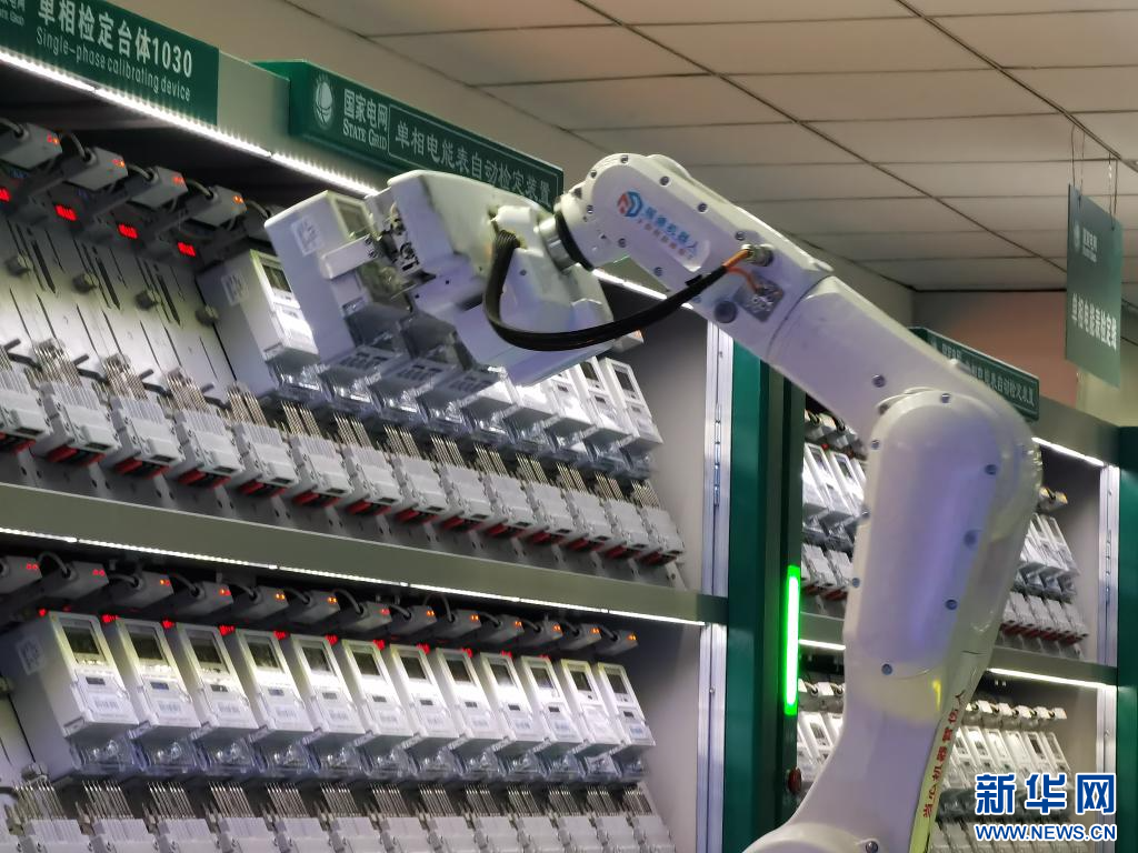 自動化檢定機器人抓取電能表。新華網 發(任偉(wei) 寧 攝)