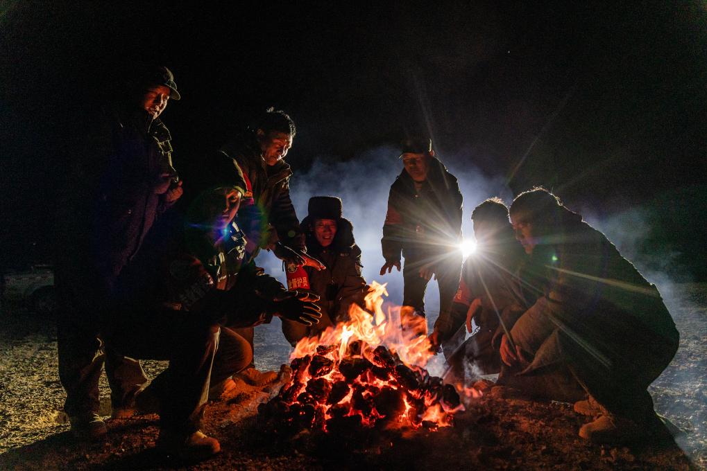 野生動物專(zhuan) 業(ye) 管護隊員在宿營地的寒夜裏烤火,燃料是野犛牛的糞便(5月10日攝)。新華社記者 丁增尼達 攝