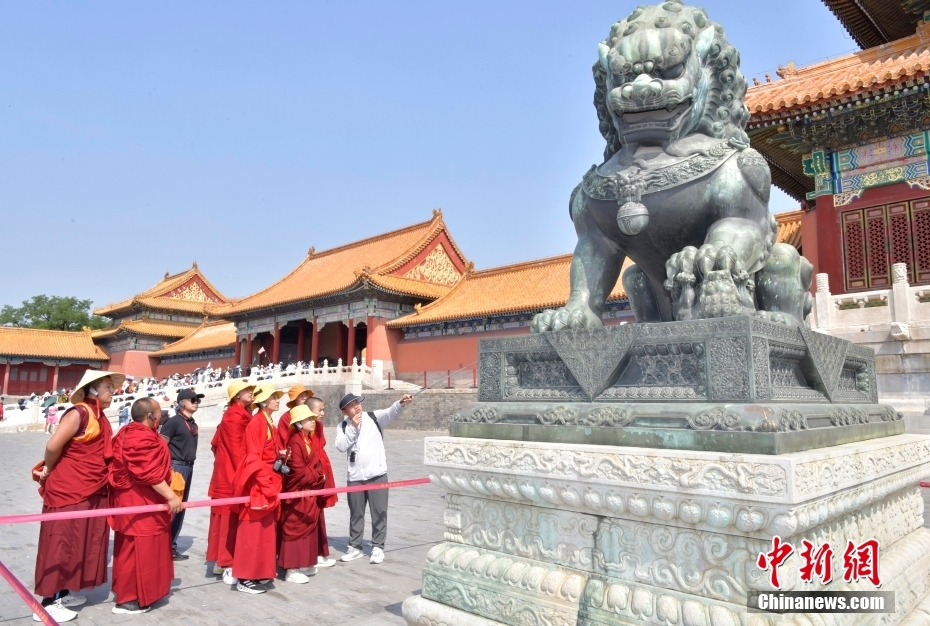 5月19日至23日,西藏少年活佛參學團來到北京參觀學習(xi) ,在清代藏傳(chuan) 佛教皇家寺院知古鑒今。圖為(wei) 5月21日,西藏少年活佛參學團到北京故宮博物院參訪。