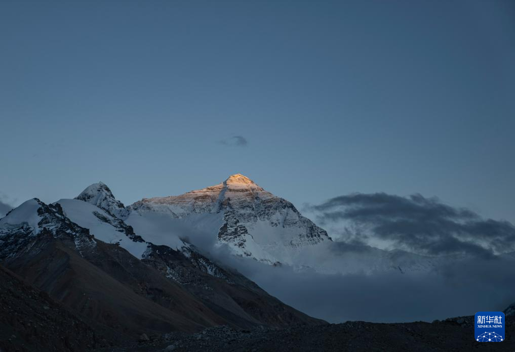 日落時分的珠穆朗瑪峰(5月23日攝)。