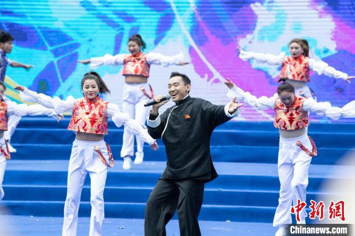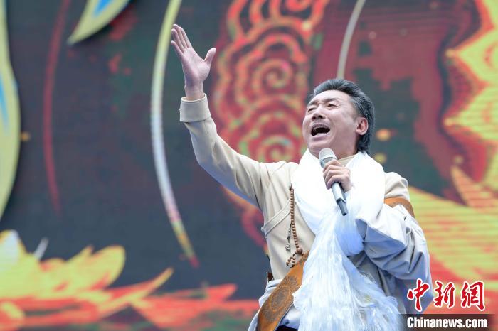 圖為(wei) 歌手容中爾甲正在演唱歌曲《高原紅》。貢嘎來鬆 攝