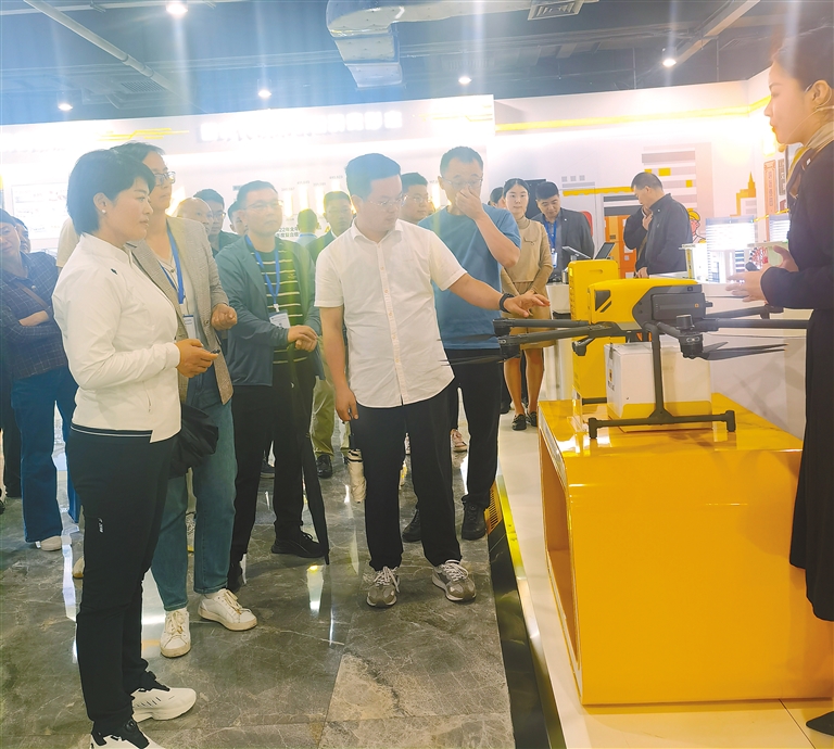 圖為(wei) 西藏自治區高原經濟高質量發展專(zhuan) 題培訓班學員在大疆無人機總部參觀學習(xi) 。記者 次仁片多 攝