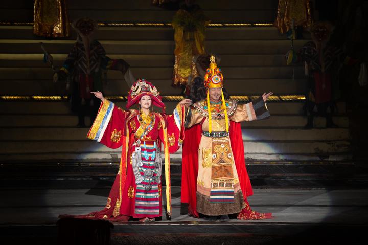 同一個(ge) 夜晚,穿過近2000公裏,在日光城拉薩,婉轉的唱段中,依山而建的舞台上,大型史詩劇《文成公主》講述著盛唐時期公主從(cong) 長安城到邏些(拉薩舊稱)的故事,一幅民族交往交流交融的曆史畫卷就此展開。