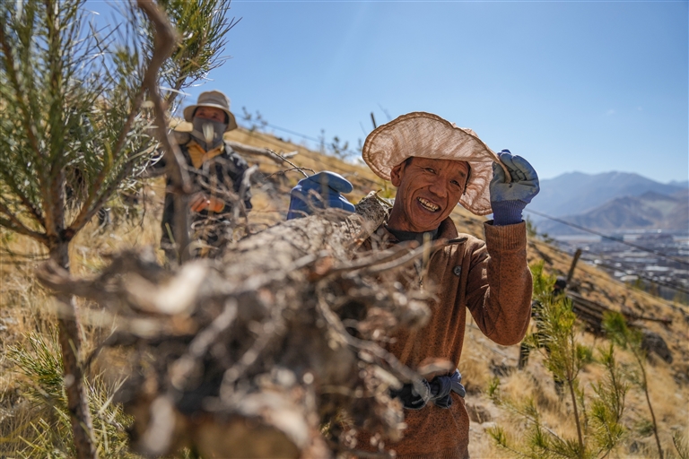 東(dong) 嘎社區二組所在的西嘎山,原是一片光禿禿的岩石地,“一棵樹木都沒有”,夏季幹燥炎熱、冬季風沙彌漫,惡劣的居住環境一直讓社區群眾(zhong) 苦不堪言。2012年,秉持“為(wei) 子孫後代留下一片美麗(li) ”的初衷,二組組長仁增開始帶領社區群眾(zhong) 開展義(yi) 務植樹,下決(jue) 心要改善居住環境。“剛開始,群眾(zhong) 不理解,有的還有抵觸情緒。我們(men) 一邊挨家挨戶做群眾(zhong) 工作,一邊堅持每年種樹,山上慢慢地綠起來,大家的態度也逐漸緩和,有的群眾(zhong) 甚至還積極參與(yu) 綠化事業(ye) ……”仁增介紹,從(cong) 2012年到2022年間,二組累計種樹麵積近2000畝(mu) 。幾十年寸草不生的地方,竟然木已成林!