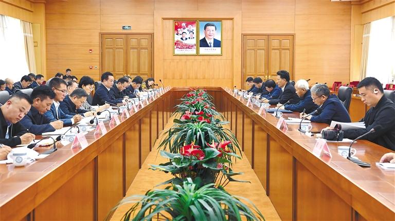 日前,自治區黨(dang) 委書(shu) 記王君正在拉薩與(yu) 全國人大常委會(hui) 副委員長洛桑江村率隊的全國人大常委會(hui) 調研組一行座談。這是座談現場。 本報記者 李洲 攝