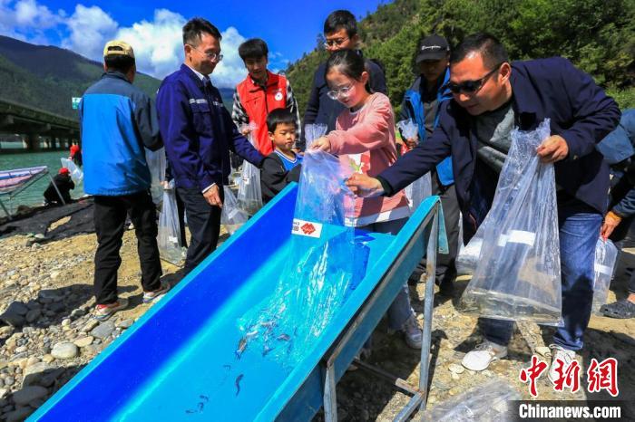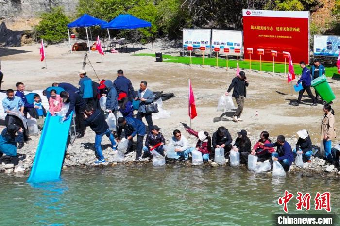 圖為(wei) 6月6日,西藏林芝尼洋河魚苗放流現場。國家能源集團西藏公司 供圖