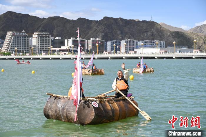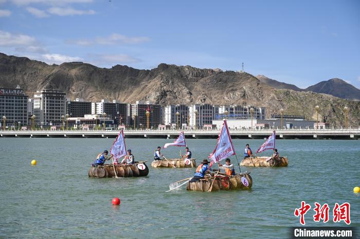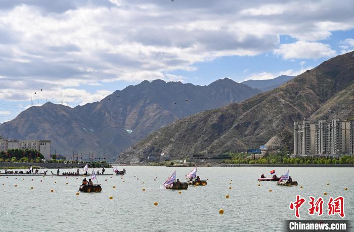 圖為(wei) 牛皮船比賽現場。貢嘎來鬆 攝