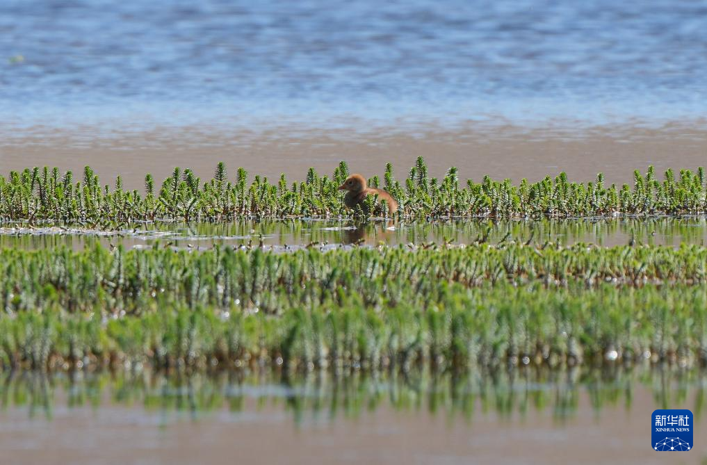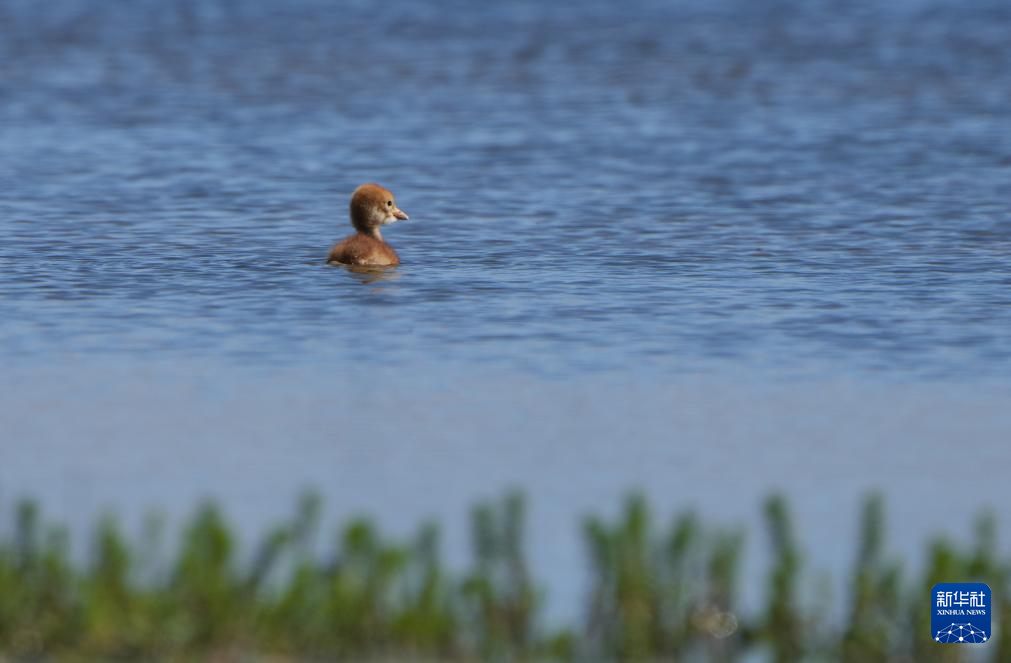 這是6月9日在西藏那曲市申紮縣一處濕地拍攝的黑頸鶴雛鳥。新華社記者 晉美多吉 攝