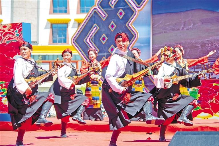 在非遺歌舞專(zhuan) 場開幕演出中,日喀則市開場舞《溫巴頓》、那曲市二重唱《那曲拉伊》、阿裏地區歌舞《果爾孜》、山南市歌舞《羊卓果諧》、林芝市貢布箭歌群舞《噠拉姆》、拉薩市歌舞《協榮仲孜》、鷹笛二重奏《金剛山崖上的雄鷹》等節目陸續上演,為(wei) 市民和遊客帶來了一場內(nei) 涵深厚的視聽盛宴。