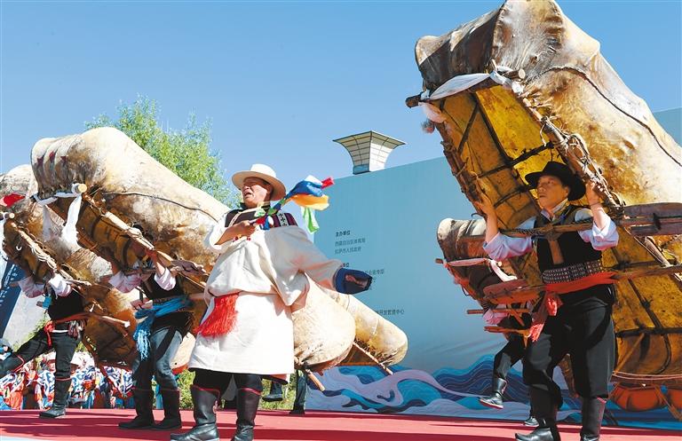 圖為(wei) 在2024年西藏自治區端午節牛皮船(龍舟)賽開幕式上,群眾(zhong) 表演牛皮船舞。 旦增蘭(lan) 澤 攝
