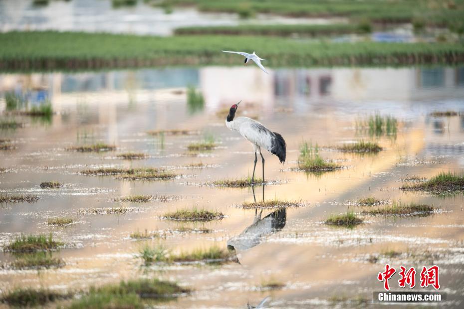 6月12日,西藏那曲市申紮縣一隻黑頸鶴在濕地裏覓食。申紮縣,平均海拔超過4500米,是黑頸鶴在中國的主要繁殖地之一。每年4月到6月,成群的黑頸鶴會(hui) 來到這裏,築巢、孵化、養(yang) 育下一代。近年來,為(wei) 了保護這些珍貴的生靈,申紮縣采取了一係列措施,設立了監測站,對黑頸鶴的棲息地進行24小時監控,確保它們(men) 的繁殖不受幹擾。黑頸鶴是國家一級保護動物,也是世界上唯一一種生長、繁殖在高原的鶴類。貢嘎來鬆 攝