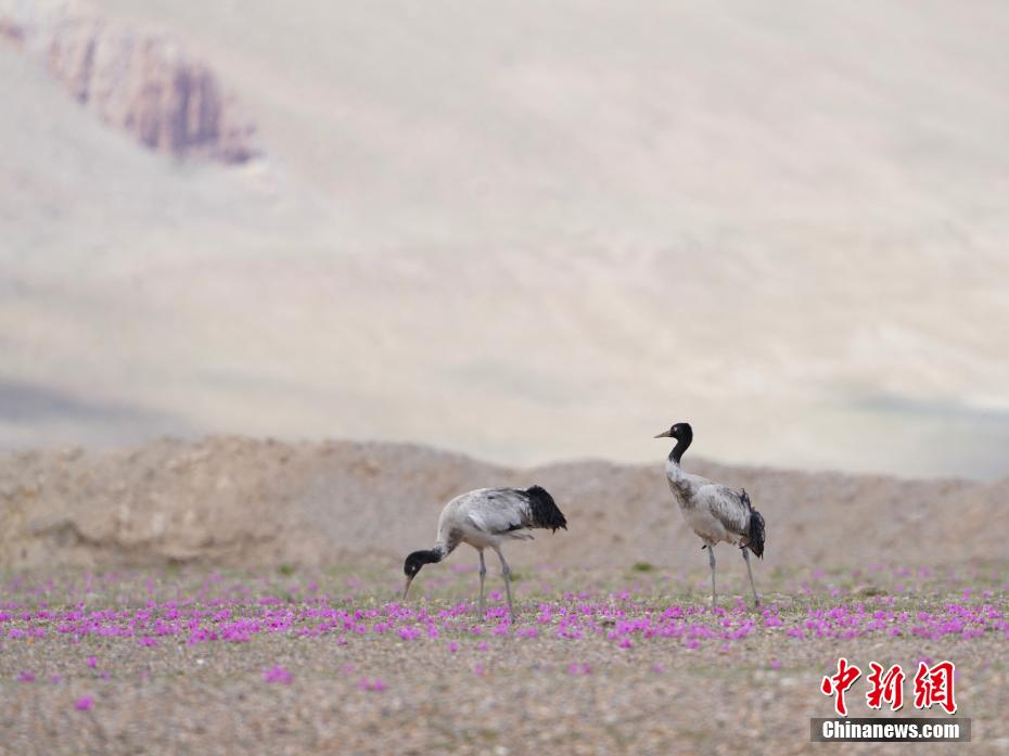 6月12日,西藏那曲市申紮縣黑頸鶴在花叢(cong) 中覓食。申紮縣,平均海拔超過4500米,是黑頸鶴在中國的主要繁殖地之一。每年4月到6月,成群的黑頸鶴會(hui) 來到這裏,築巢、孵化、養(yang) 育下一代。近年來,為(wei) 了保護這些珍貴的生靈,申紮縣采取了一係列措施,設立了監測站,對黑頸鶴的棲息地進行24小時監控,確保它們(men) 的繁殖不受幹擾。黑頸鶴是國家一級保護動物,也是世界上唯一一種生長、繁殖在高原的鶴類。貢嘎來鬆 攝