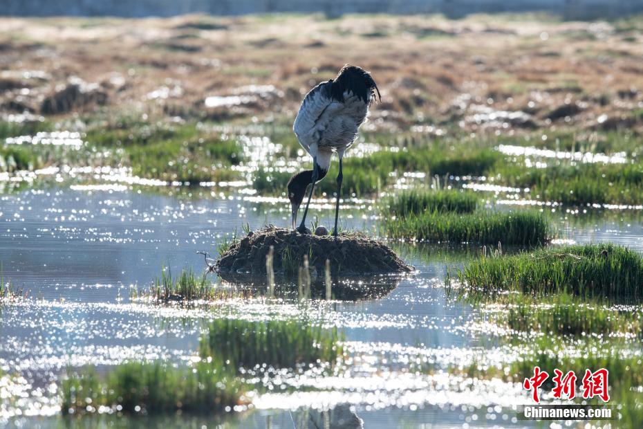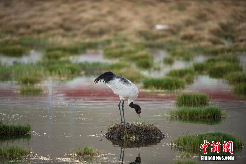 6月12日,西藏那曲市申紮縣濕地裏一隻黑頸鶴正準備孵蛋。申紮縣,平均海拔超過4500米,是黑頸鶴在中國的主要繁殖地之一。每年4月到6月,成群的黑頸鶴會(hui) 來到這裏,築巢、孵化、養(yang) 育下一代。近年來,為(wei) 了保護這些珍貴的生靈,申紮縣采取了一係列措施,設立了監測站,對黑頸鶴的棲息地進行24小時監控,確保它們(men) 的繁殖不受幹擾。黑頸鶴是國家一級保護動物,也是世界上唯一一種生長、繁殖在高原的鶴類。貢嘎來鬆 攝