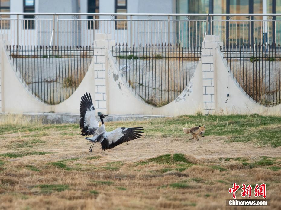 6月12日,西藏那曲市申紮縣濕地裏一隻黑頸鶴在驅趕狐狸。申紮縣,平均海拔超過4500米,是黑頸鶴在中國的主要繁殖地之一。每年4月到6月,成群的黑頸鶴會(hui) 來到這裏,築巢、孵化、養(yang) 育下一代。近年來,為(wei) 了保護這些珍貴的生靈,申紮縣采取了一係列措施,設立了監測站,對黑頸鶴的棲息地進行24小時監控,確保它們(men) 的繁殖不受幹擾。黑頸鶴是國家一級保護動物,也是世界上唯一一種生長、繁殖在高原的鶴類。貢嘎來鬆 攝