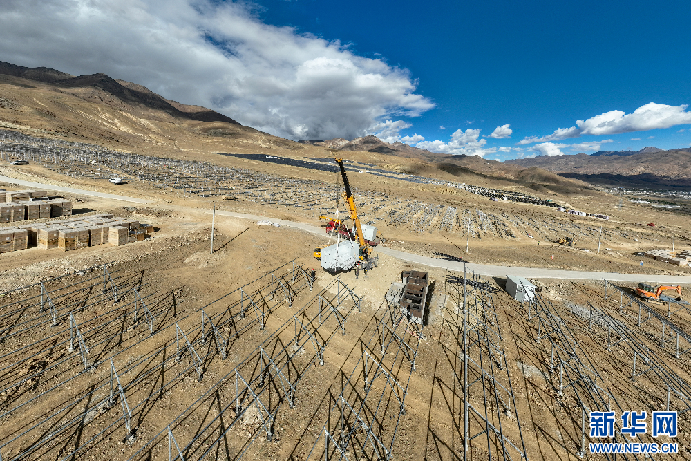 在建設中的110千伏協合措美縣20(MW)並網光伏電站項目(無人機照片)。新華網 旦增努布 攝