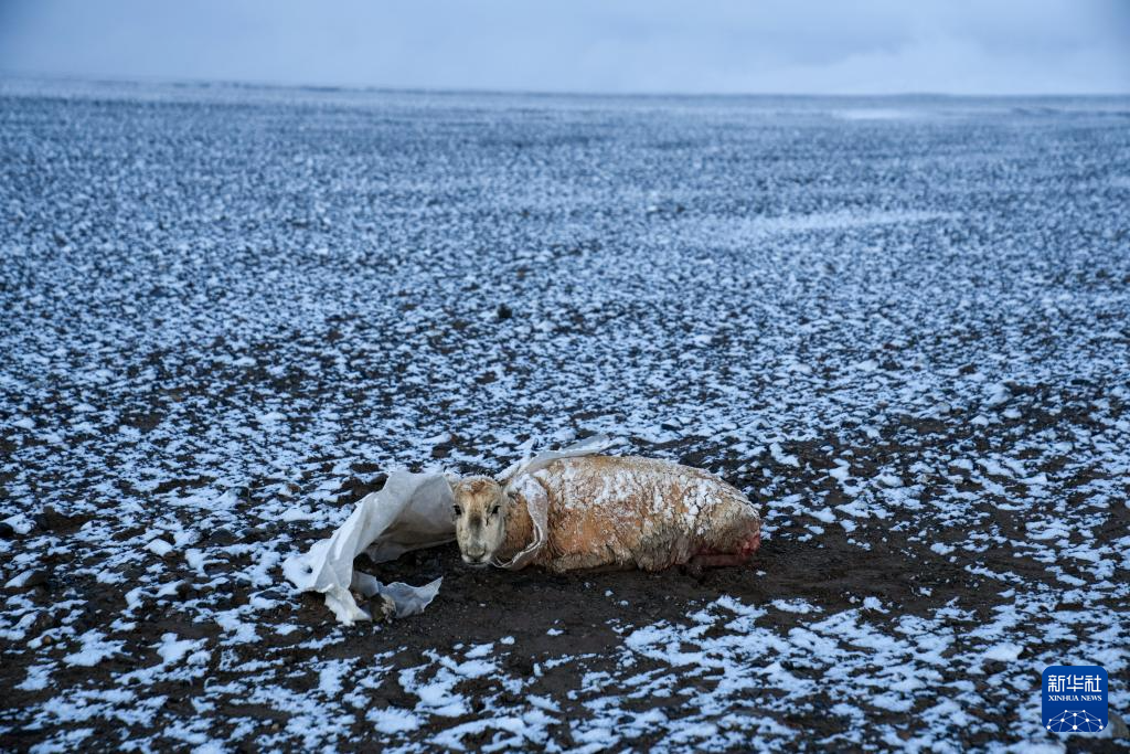 6月15日清晨,在西藏那曲市尼瑪縣境內(nei) 的羌塘國家級自然保護區“無人區”深處,受傷(shang) 的母藏羚羊已經死去。新華社記者 費茂華 攝