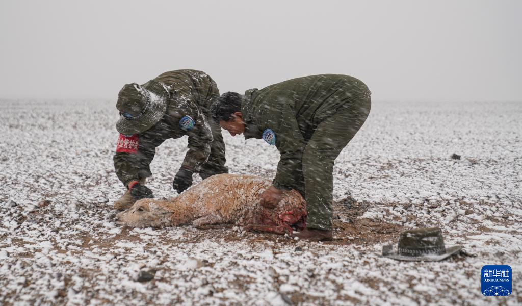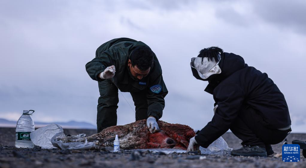 羌塘國家級自然保護區的野保員在查看受傷(shang) 的母藏羚羊(6月14日攝)。新華社記者 晉美多吉 攝