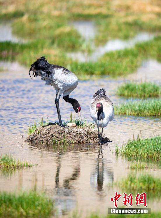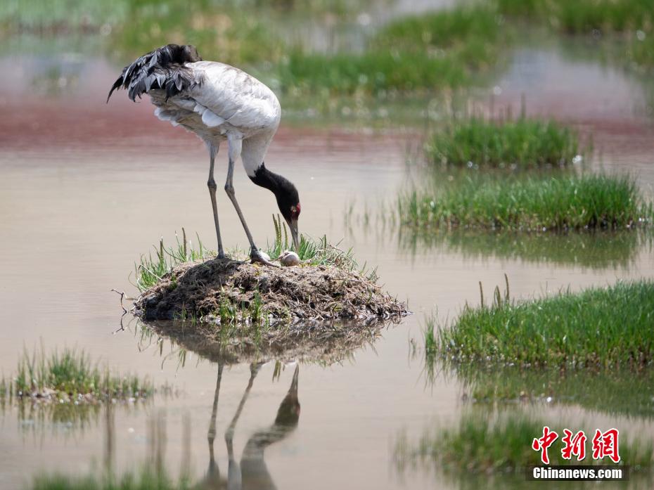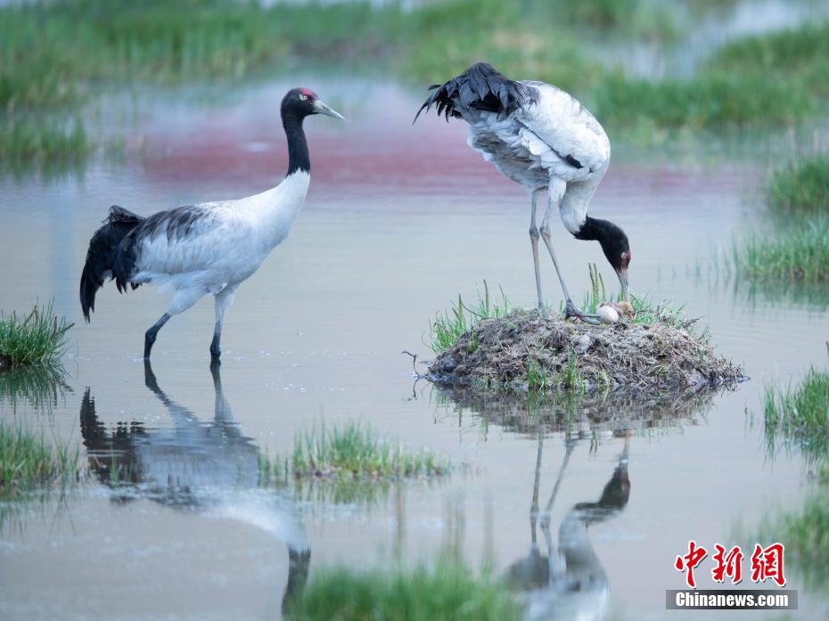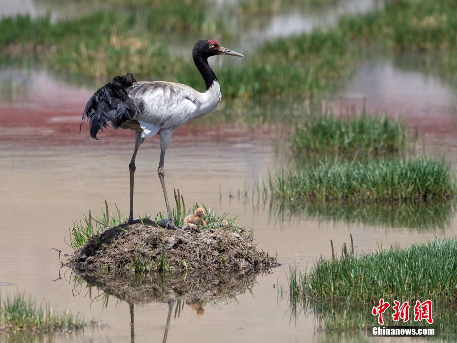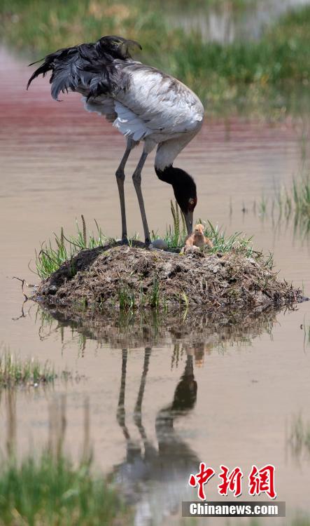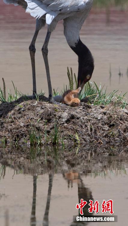 6月16日,在海拔4700米的西藏那曲市申紮縣,經過34天的漫長孵化期,一對黑頸鶴夫婦終於(yu) 等來了自己的小黑頸鶴成功破殼出生。值得一提的是,黑頸鶴寶寶的誕生日也是2024年的父親(qin) 節,黑頸鶴父親(qin) 在節日當天喜獲最珍貴的禮物。據悉,黑頸鶴每窩通常產(chan) 卵1-2枚,孵化期通常要33到35天。中新社記者 貢嘎來鬆 攝
