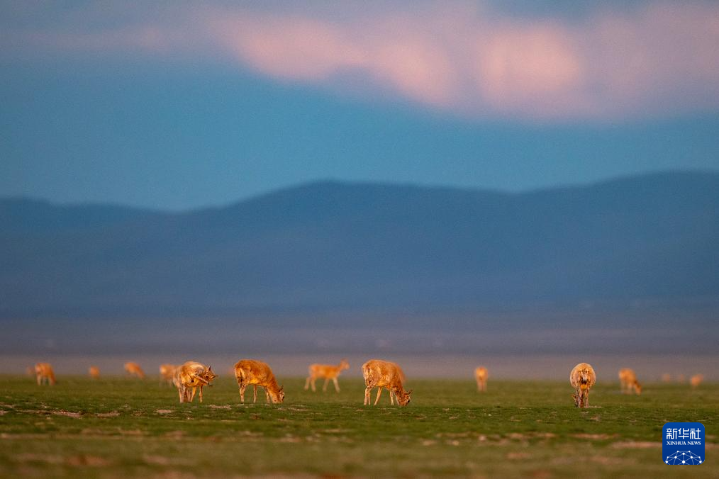 待產(chan) 的藏羚羊在黃昏的魯確塘草原徜徉(6月16日攝)。新華社記者 薑帆 攝