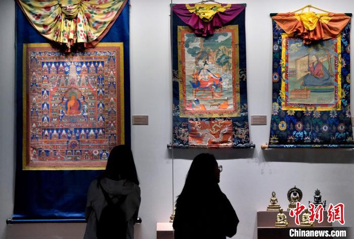 隨著西藏旅遊旺季的到來,“高原城市會(hui) 客廳”西藏博物館也迎來參觀熱潮。圖為(wei) 6月19日,觀眾(zhong) 正在欣賞展陳的唐卡。中新社記者 李林 攝