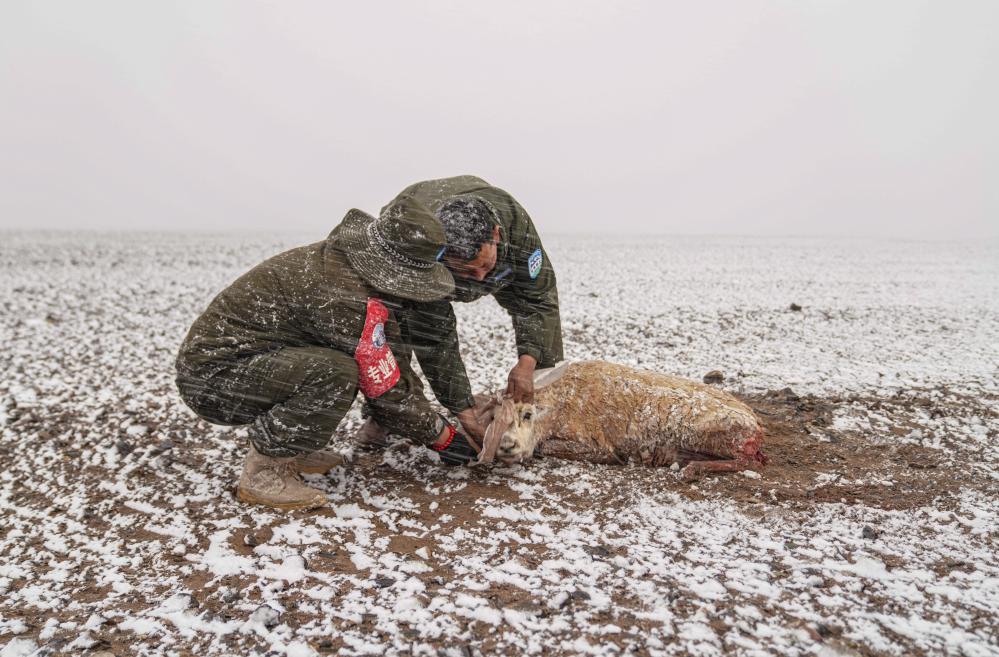 管護員在救治受傷(shang) 的藏羚羊(6月14日攝)。新華社記者 晉美多吉 攝