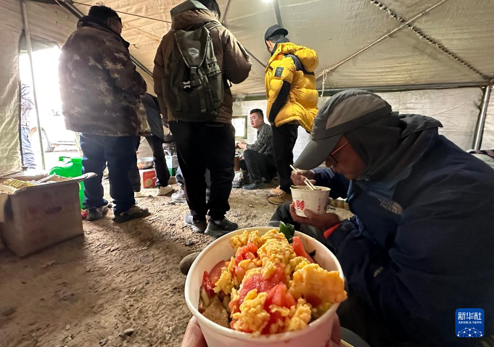 6月13日,記者在享用帳篷裏的晚餐。新華社記者 費茂華 攝
