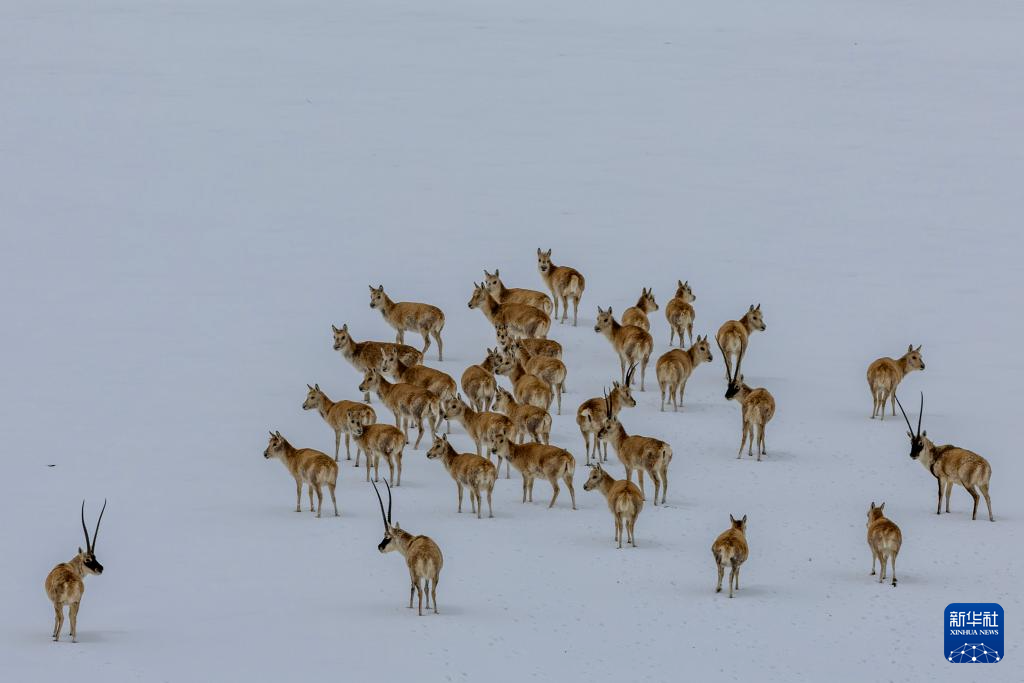 這是在色林錯湖畔拍攝到的藏羚羊(1月5日攝)。 新華社記者 薑帆 攝
