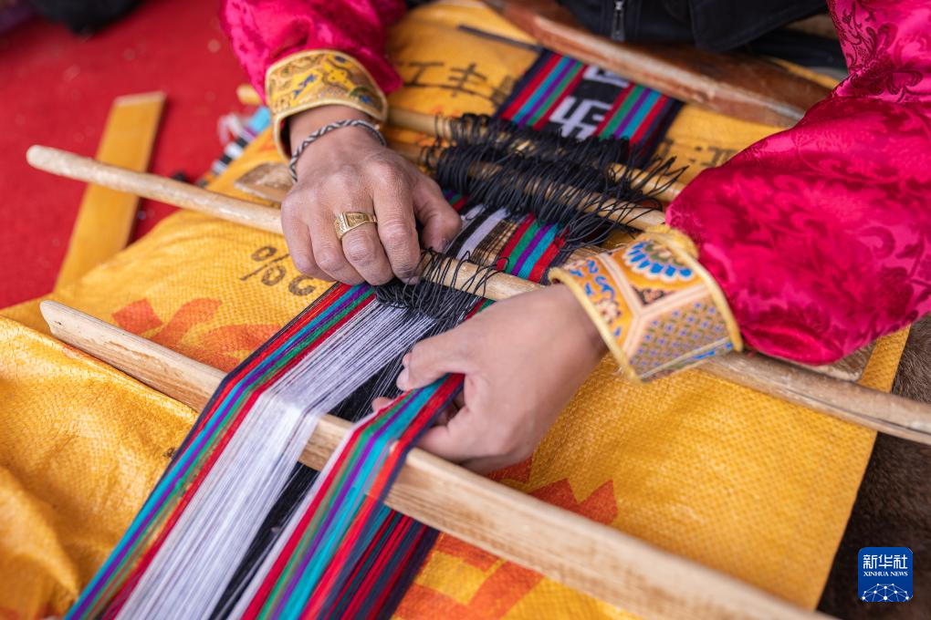在那曲市雙湖縣,農(nong) 牧民選手邊曲在參加手工編織技藝比賽(6月20日攝)。新華社記者 丁增尼達 攝