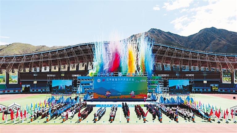 6月22日,拉薩首屆農(nong) 牧民運動會(hui) 在拉薩市群眾(zhong) 文化體(ti) 育中心開幕。來自全市各縣(區)、功能園區的11支代表隊500餘(yu) 名運動員參賽。