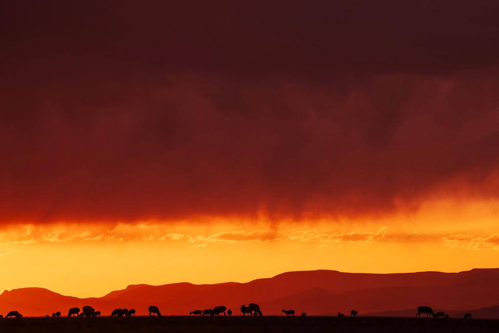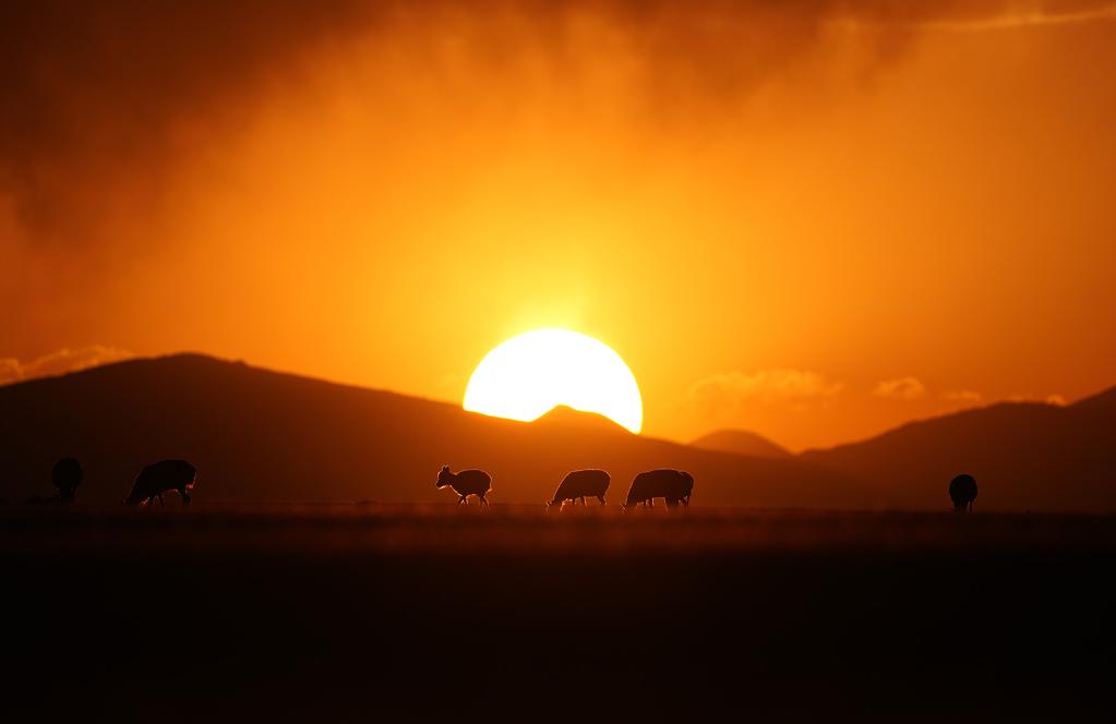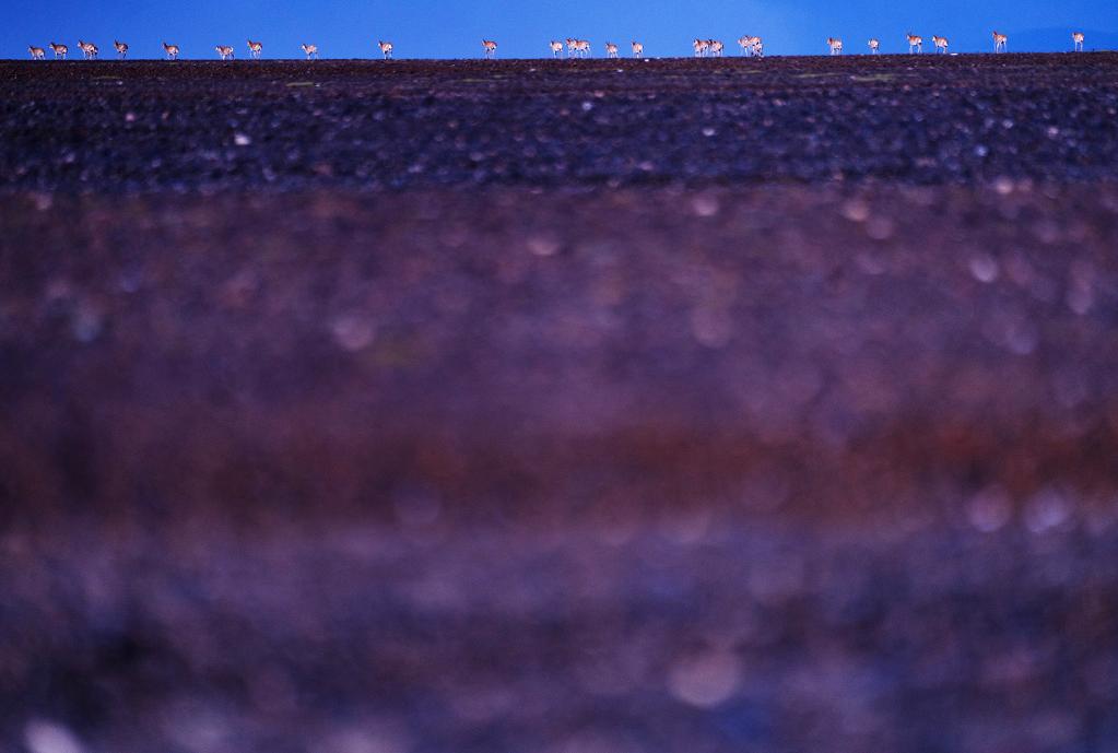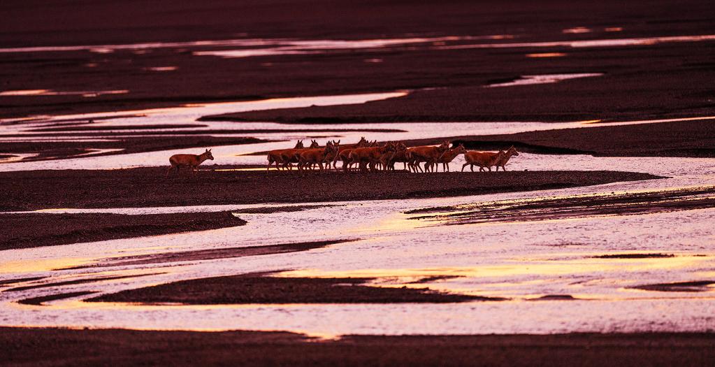 ↑ 在羌塘國家級自然保護區,藏羚羊在夕陽下覓食。