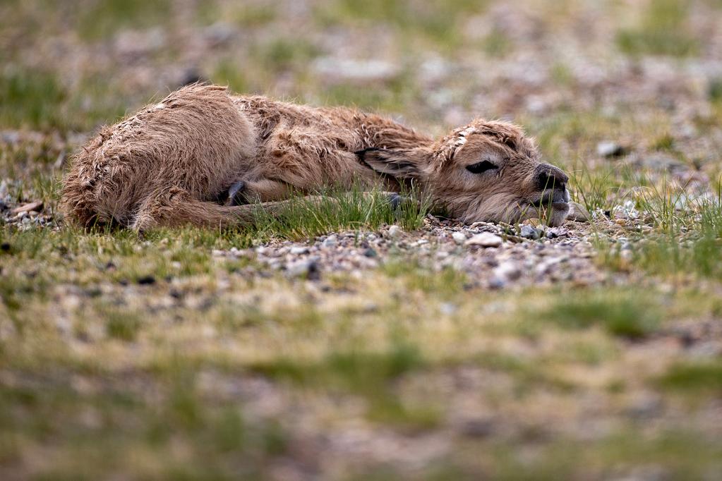 2024年6月17日,羌塘國家級自然保護區境內(nei) 的西藏那曲市申紮縣買(mai) 巴鄉(xiang) 魯確塘草原上一隻剛出生不久的小藏羚羊。