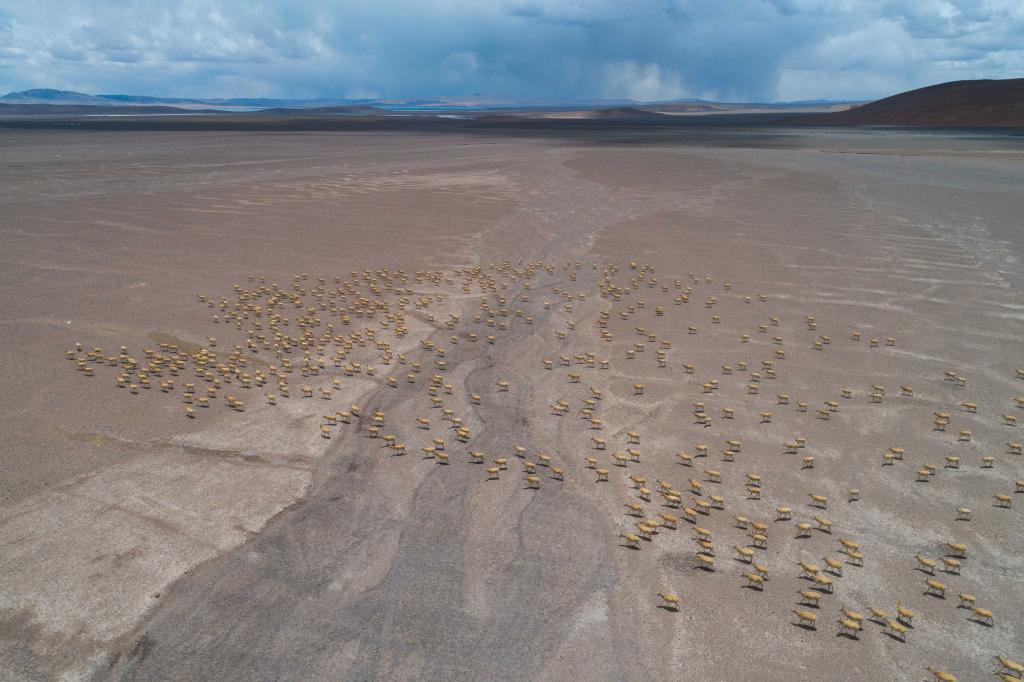 每年5月至7月,藏北羌塘國家級自然保護區內(nei) 的母藏羚羊進入遷徙繁殖季。數十萬(wan) 隻母羊,向著羌塘保護區深處的瑪爾蓋茶卡附近和玉龍河畔的產(chan) 羔地遷徙,於(yu) 此生下小羊羔後再回遷。
