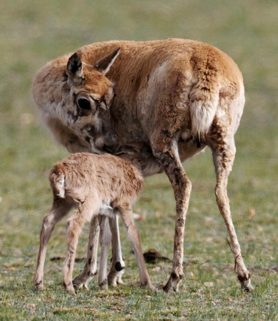 2024年6月17日,羌塘國家級自然保護區境內(nei) 的西藏那曲市申紮縣買(mai) 巴鄉(xiang) 魯確塘草原上一隻剛出生不久的小藏羚羊在吃奶。