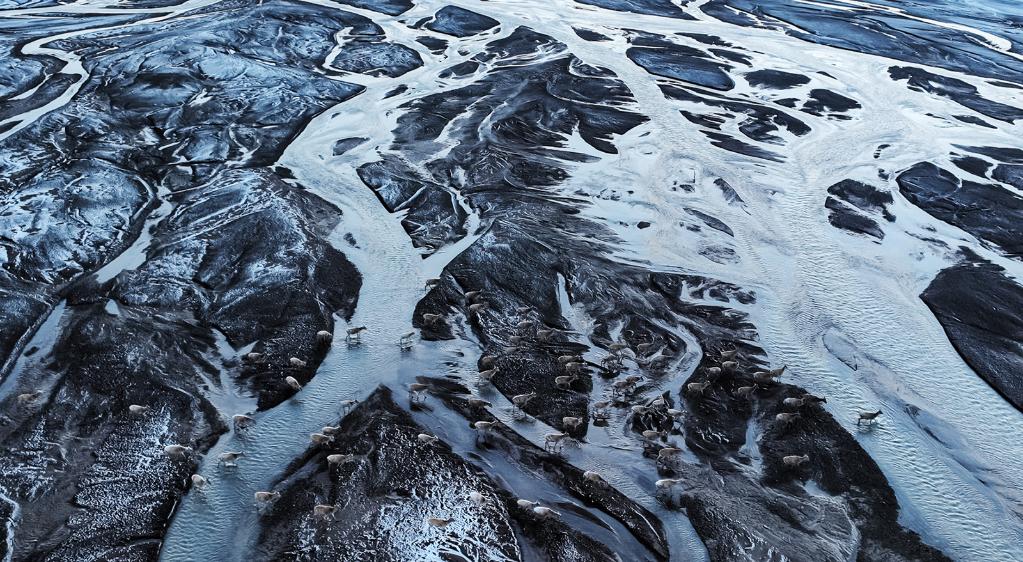 ↑ 在羌塘國家級自然保護區,藏羚羊越過甜水河,前往“產(chan) 房”。