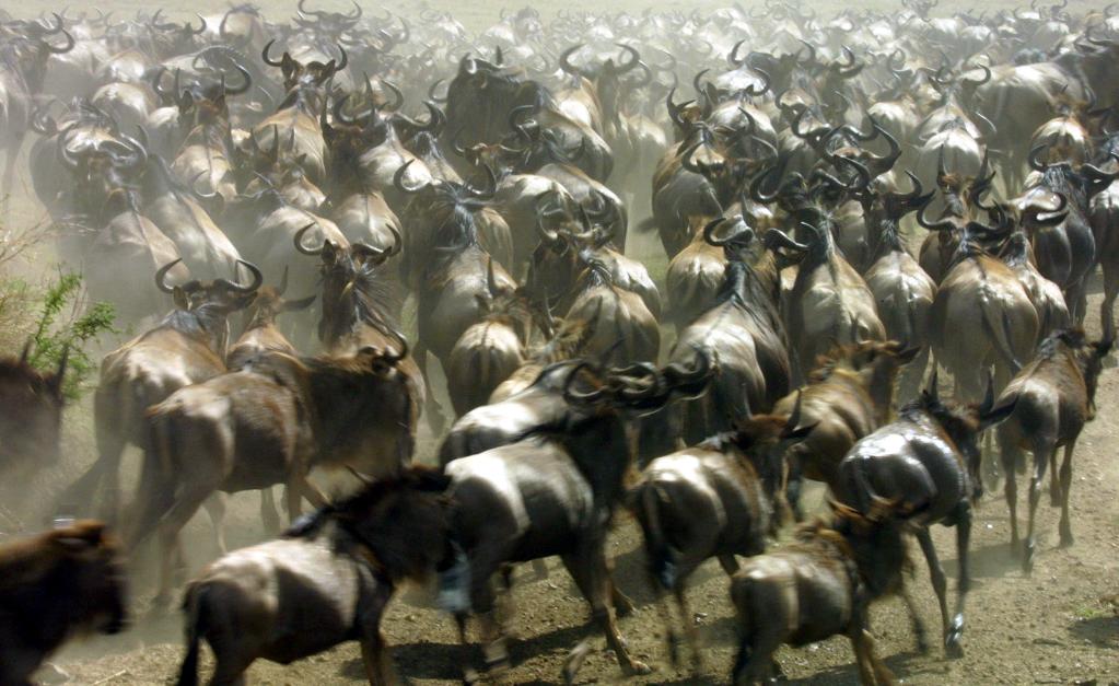 在千裏之外的非洲,每年7月至9月,為(wei) 了追逐水源和青草,數百萬(wan) 頭角馬、斑馬和羚羊等食草動物組成一支浩浩蕩蕩的遷徙大軍(jun) ,從(cong) 坦桑尼亞(ya) 塞倫(lun) 蓋蒂國家公園向肯尼亞(ya) 馬賽馬拉國家保護區遷徙,這就是東(dong) 非野生動物大遷徙。當數百萬(wan) 頭野生動物從(cong) 麵積廣闊達數萬(wan) 平方公裏的塞倫(lun) 蓋蒂,遷徙到僅(jin) 有不到2000平方公裏的馬賽馬拉的時候,遷徙達到高潮。