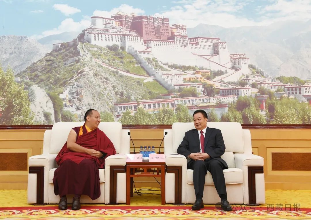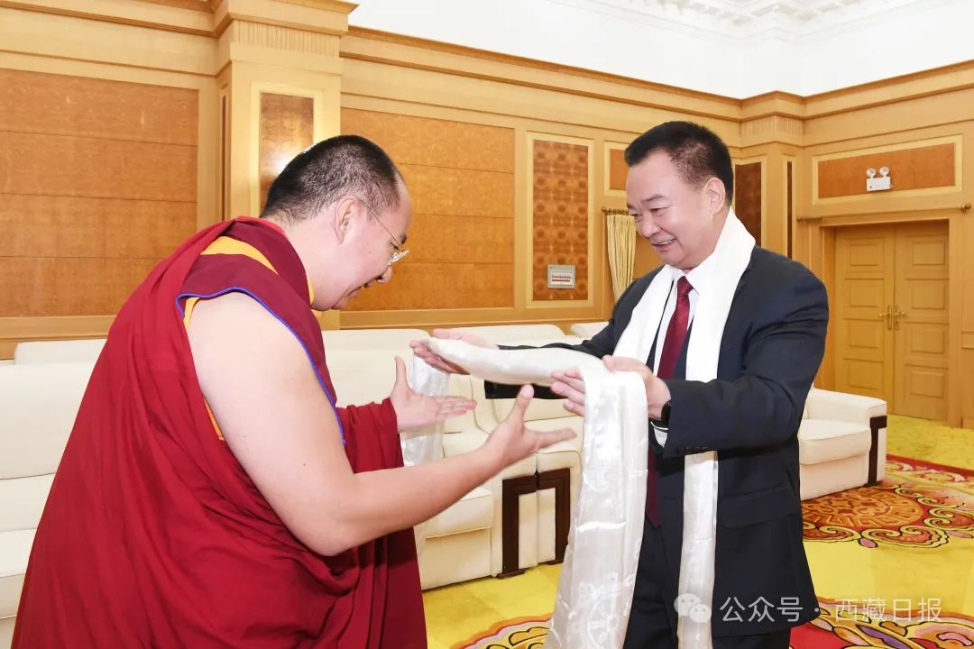 6月26日下午,西藏自治區黨(dang) 委書(shu) 記王君正在拉薩會(hui) 見班禪額爾德尼·確吉傑布。