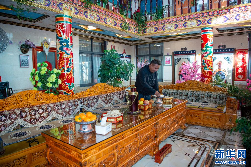 6月24日,紮西曲登社區村民在家準備迎接遊客。新華網 旦增努布 攝