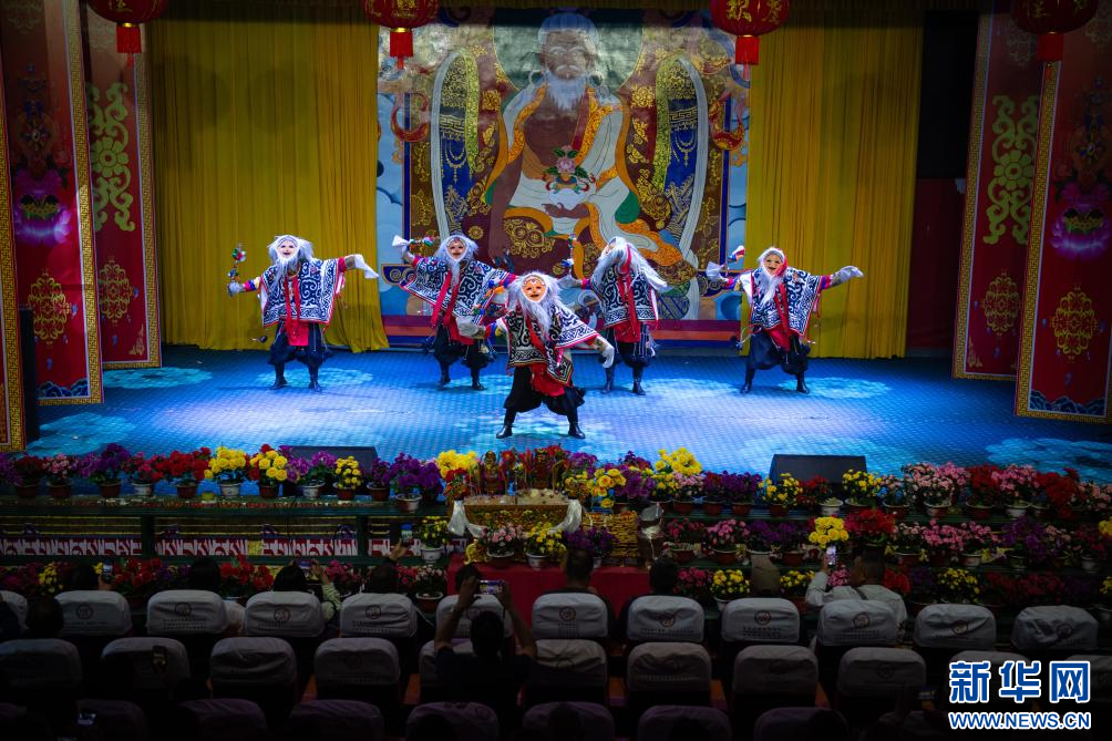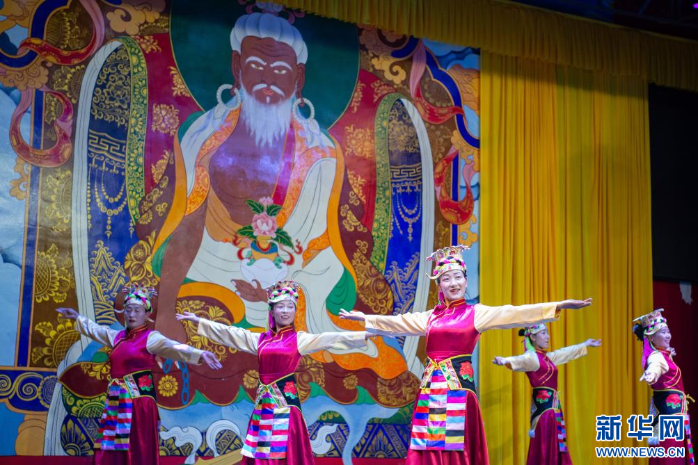6月24日,群眾(zhong) 在國家級非物質文化遺產(chan) 雅礱紮西雪巴藏戲傳(chuan) 習(xi) 基地表演傳(chuan) 統舞蹈節目。新華網 旦增努布 攝