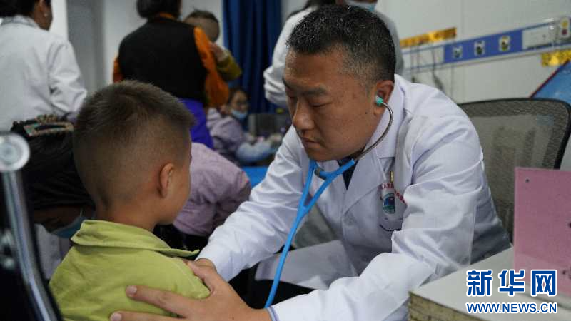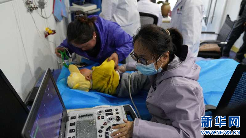“心佑工程”團隊成員正在對疑似先天性心髒病患兒(er) 進行心超檢查(新華社發)