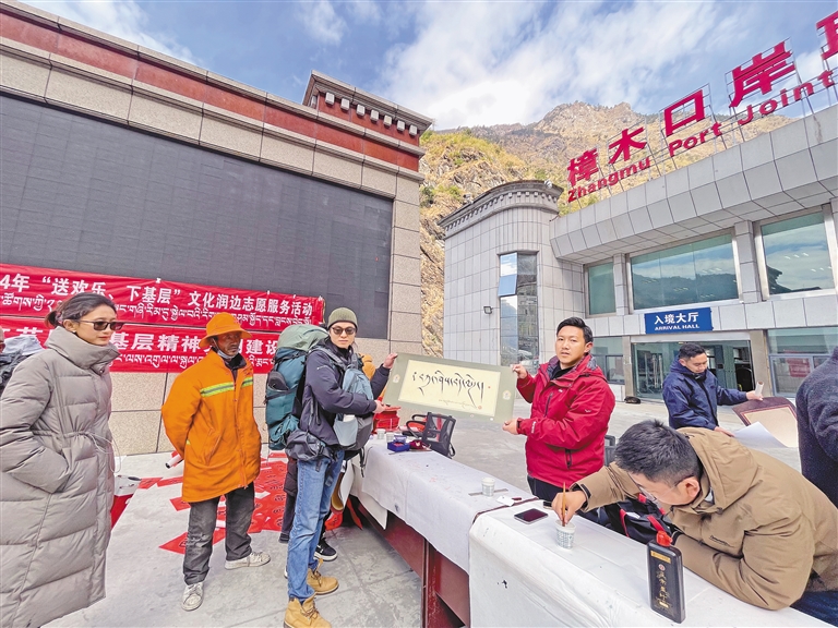 圖為(wei) 日喀則市文聯在樟木口岸舉(ju) 行送新春祝福活動。