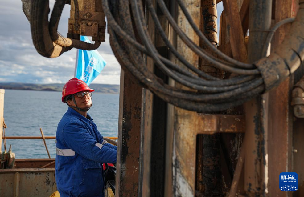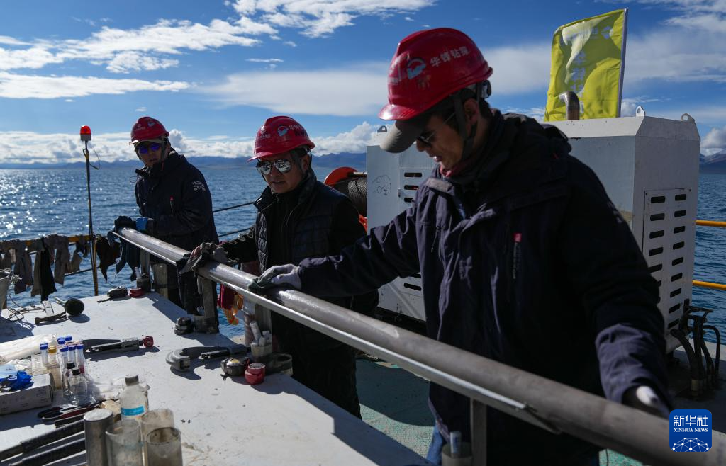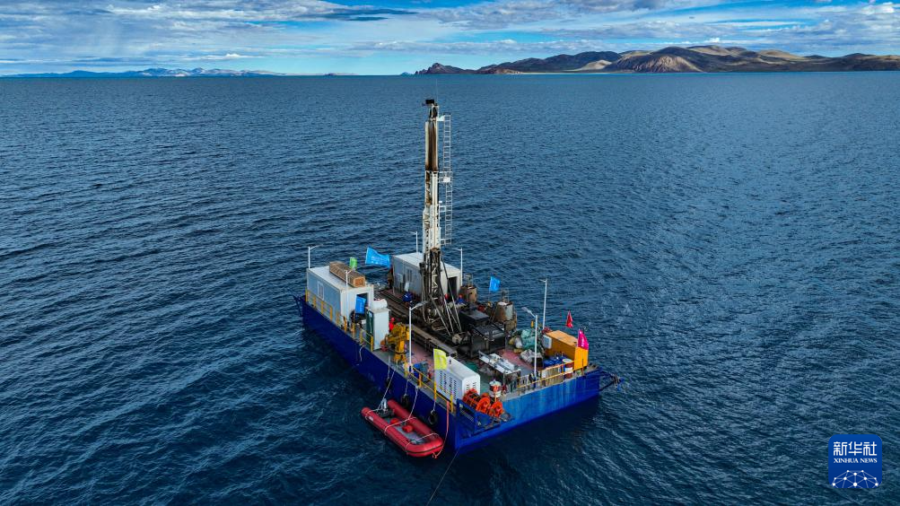在海拔超過4700米的西藏納木錯,湖泊岩芯鑽探工作正在開展中。
